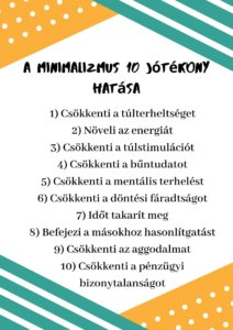 Bízok benne, hogy minél többünknek sikerül megtapasztalnia a szabadság ilyen fokú, és ennyi jótékony hatással járó érzését a minimalizmus segítségével! Célom minél több embernek segíteni bejárni ezt az izgalmas utat, melynek végén egy kiegyensúlyozottabb, nyugodtabb és célirányosabb élet vár!